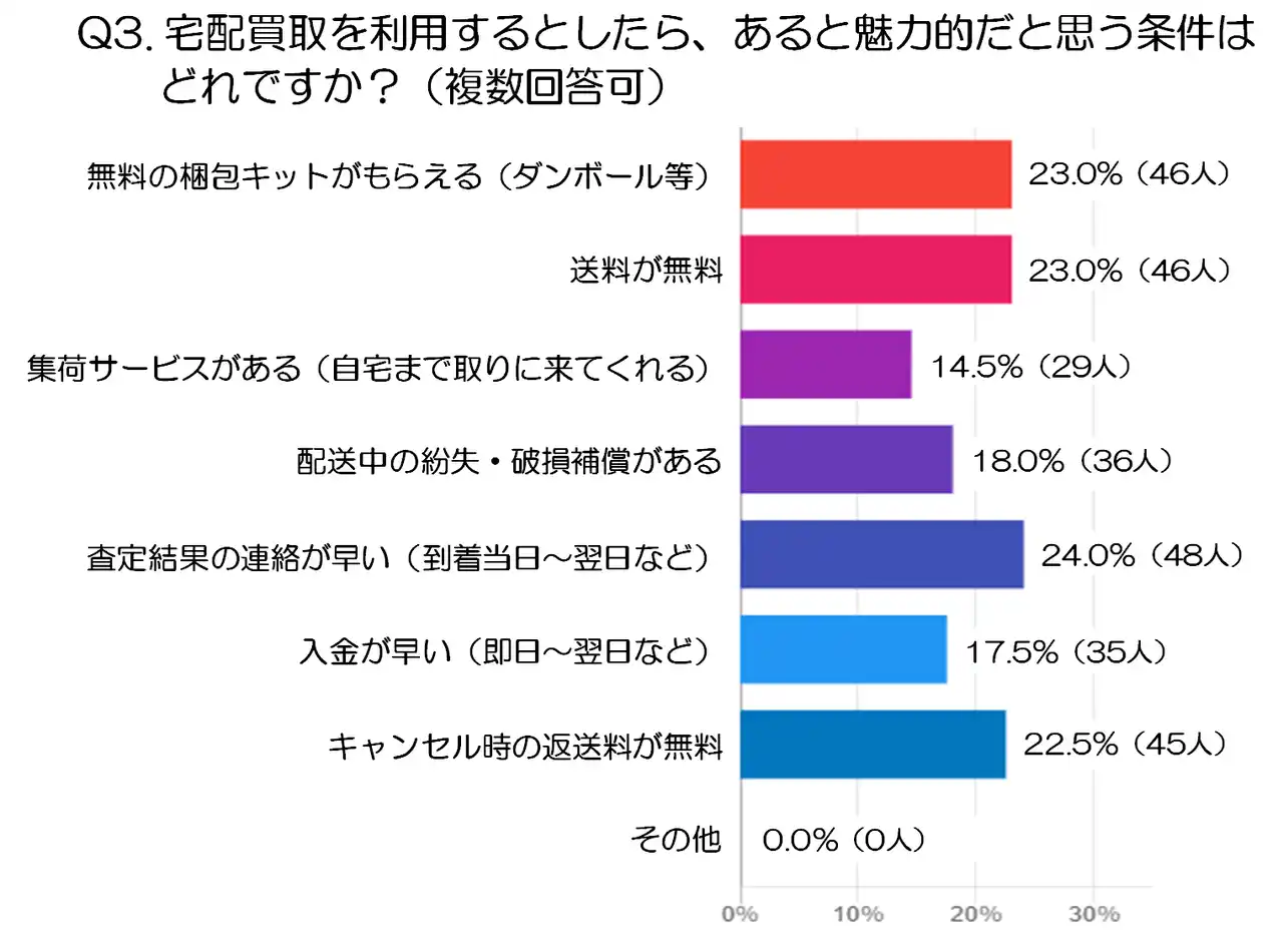 Q3.宅配買取を利用するとしたら、あると魅力的だと思う条件はどれですか?(複数回答可:注2) |