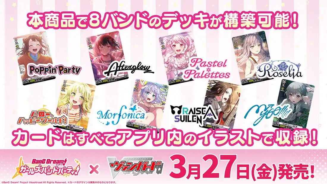 株式会社ブシロード(本社:東京都中野区、代表取締役社長:木谷高明)は、3月27日(金)にタイトルブースター プレミアム「バンドリ! ガールズバンドパーティ!」を発売することをお知らせいたします。 |