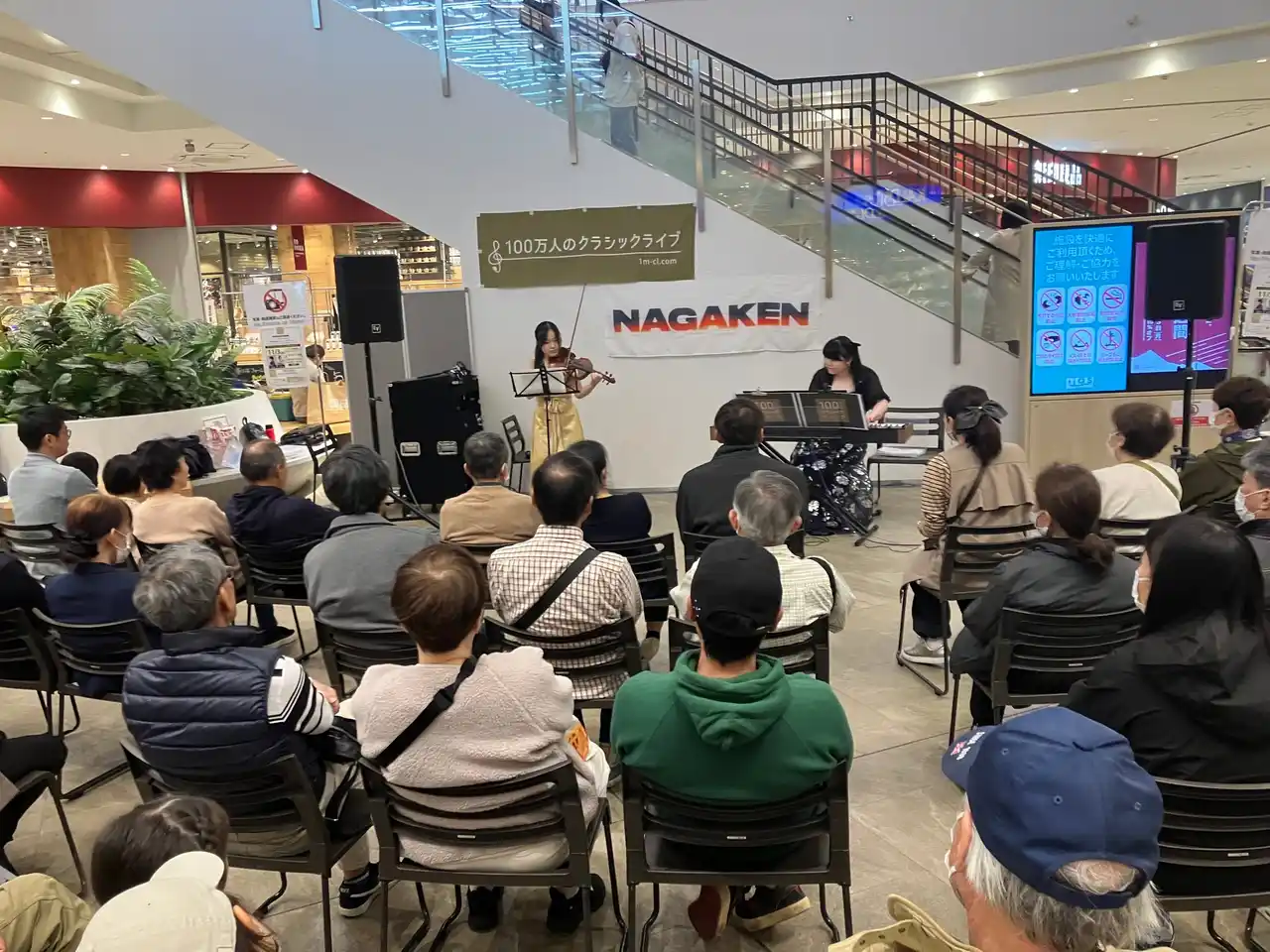 『100万人のクラシックライブ』は、ホールや劇場ではなく、商業施設や公共空間など、人が行き交う日常の場でおこなうクラシック生演奏です。年齢や音楽経験を問わず、誰でも気軽に参加でき、買い物の途中や通りがかった瞬間に、自然と音楽に出会えることを大切にしています。 |