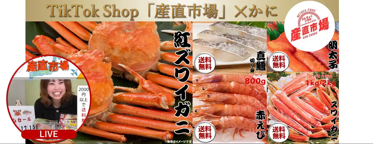 株式会社SynaBiz(本社:東京都品川区、代表取締役:石丸啓明、株式会社オークファン100%子会社)が展開する食品特化型TikTok Shop「産直市場(さんちょくいちば)」において、本ズワイガニをはじめとした冷凍食品の取扱いを開始いたしました。これにより魚介類やご当地グルメ、人気店の味など、幅広い商品をお楽しみいただけるようになりました。商品ラインナップの拡充を通じて、今後もより多くの“おいしい”をお届けしてまいります。 |