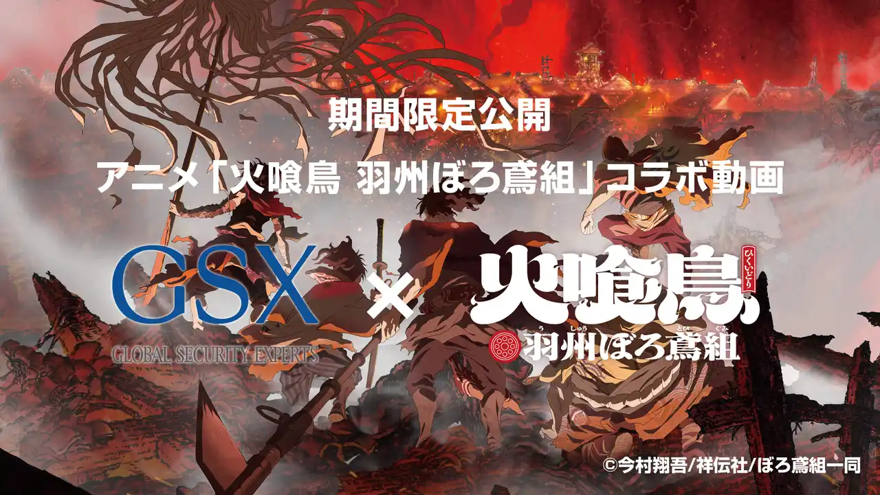 グローバルセキュリティエキスパート株式会社(以下、GSX)は、アニメ「火喰鳥 羽州ぼろ鳶組」とタイアップした30秒スポットCMを3月29日(日)23時50分~(*1)CBC/TBS系全国28局ネット「アガルアニメ」枠内で放送いたします。 |