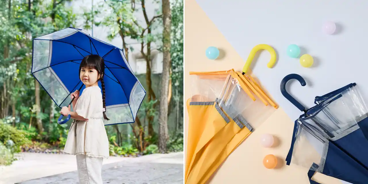 こうした背景を踏まえ、本商品は、つゆ先が出ない設計や透明窓、スピナー構造、反射テープなどを採用し、子どもの通学時の使いやすさに配慮した仕様となっています。さらに、高機能ながら1,500円(本体価格)という手に取りやすい価格を実現。子どもが実際に使用するシーンを想定した設計ポイントとあわせてご紹介します。 |