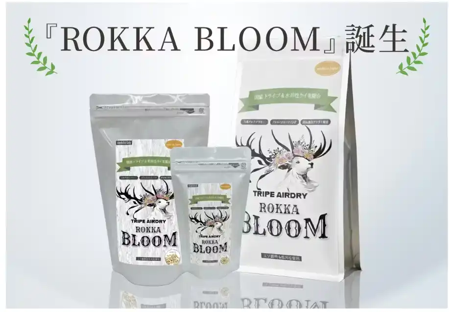 ROKKA BLOOMでは、北海道で狩猟されたエゾ鹿から、ペットフード安全検査、アミノ酸検査、細菌類検査、成分検査を行ったグリーントライプを厳選。 |