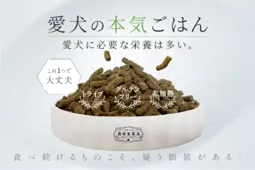 『ROKKA BLOOM』は、オイルコーティングを一切行わず、非加熱に近いエアドライ製法で愛犬の体に余計な負担をかけないことを大切にしています。 |