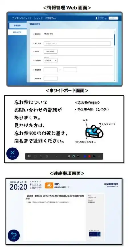 本製品は、小売店舗のバックヤードにおける情報共有を効率化し、店舗運営のDXを支援するソリューションです。 |