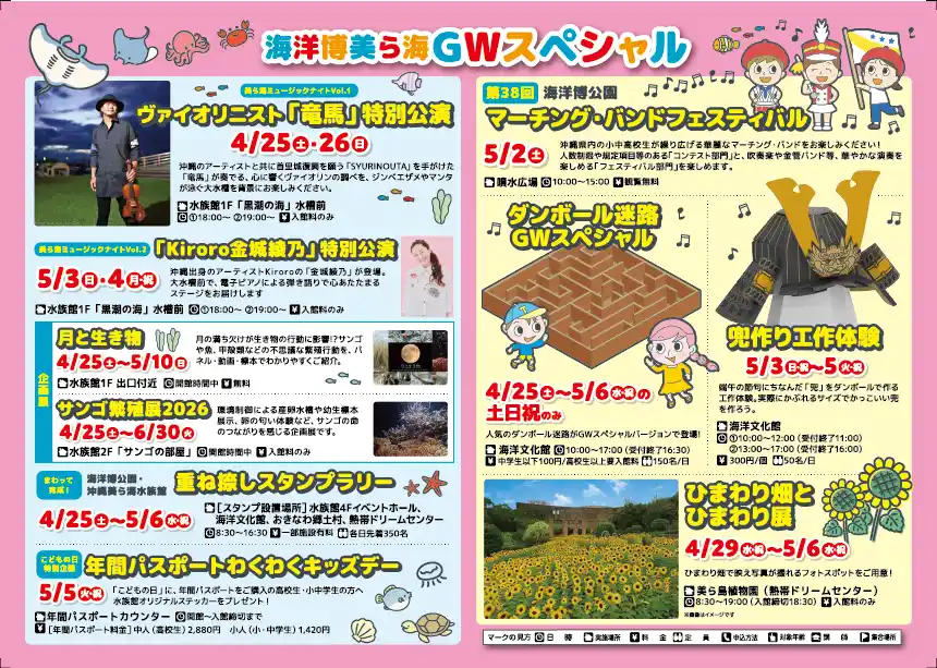 本号では、春の訪れを感じられるこの季節にぴったりのプログラムや自然にふれあえる体験、親子で参加できるイベントなどをを中心にご紹介しています。自然・文化・体験が融合した魅力的な海洋博公園にぜひお越しください。 |