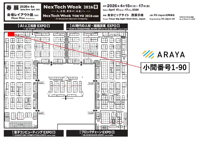 人工知能(AI)の研究開発・ソリューション提供を手掛ける株式会社アラヤ(所在地:東京都千代田区、代表取締役:金井良太、以下「アラヤ」)は、2026年4月15日(水)~17日(金)に東京ビッグサイトで開催されるNexTech Week 2026【春】「AI・人工知能EXPO」に出展いたします。 |