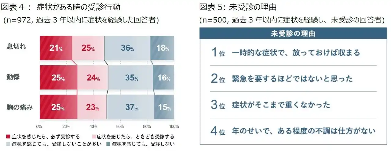 息切れなどの症状があっても受診は半数未満。「一時的なもの」「年のせい」が障壁に |