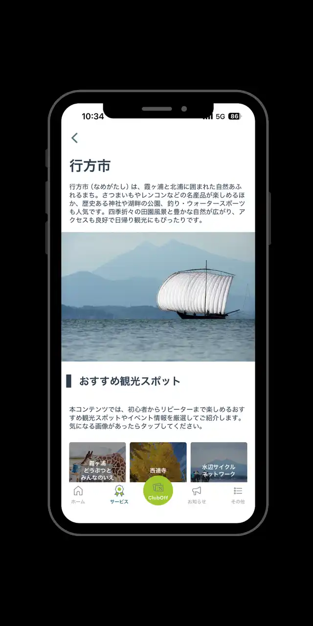 福利厚生サービス「ベネサポ」アプリ内において、企業や団体の情報発信を可能とするサービスであり、地域事業者のPRや販路拡大、地域活性化への貢献を目的としています。行方市では、本サービスを常陽銀行との連携により活用することで、企業従業員など新たなターゲット層へのアプローチを図り、地域の魅力発信を強化します。 |