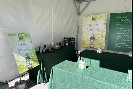 会場にはBOSCOのキッチンカーを設置し、「BOSCOエキストラバージンオリーブオイル」をガトーショコラにかけるメニューを提供。ガトーショコラのチョコレートのコクのある甘さにオリーブオイルの香りが重なり、デザートとしての新しい楽しみ方を来場者の皆さまに提案するとともに、ブースには多くの来場者が訪れ、「BOSCOエキストラバージンオリーブオイル」とガトーショコラの組み合わせに多くの関心を寄せていただきました。 |