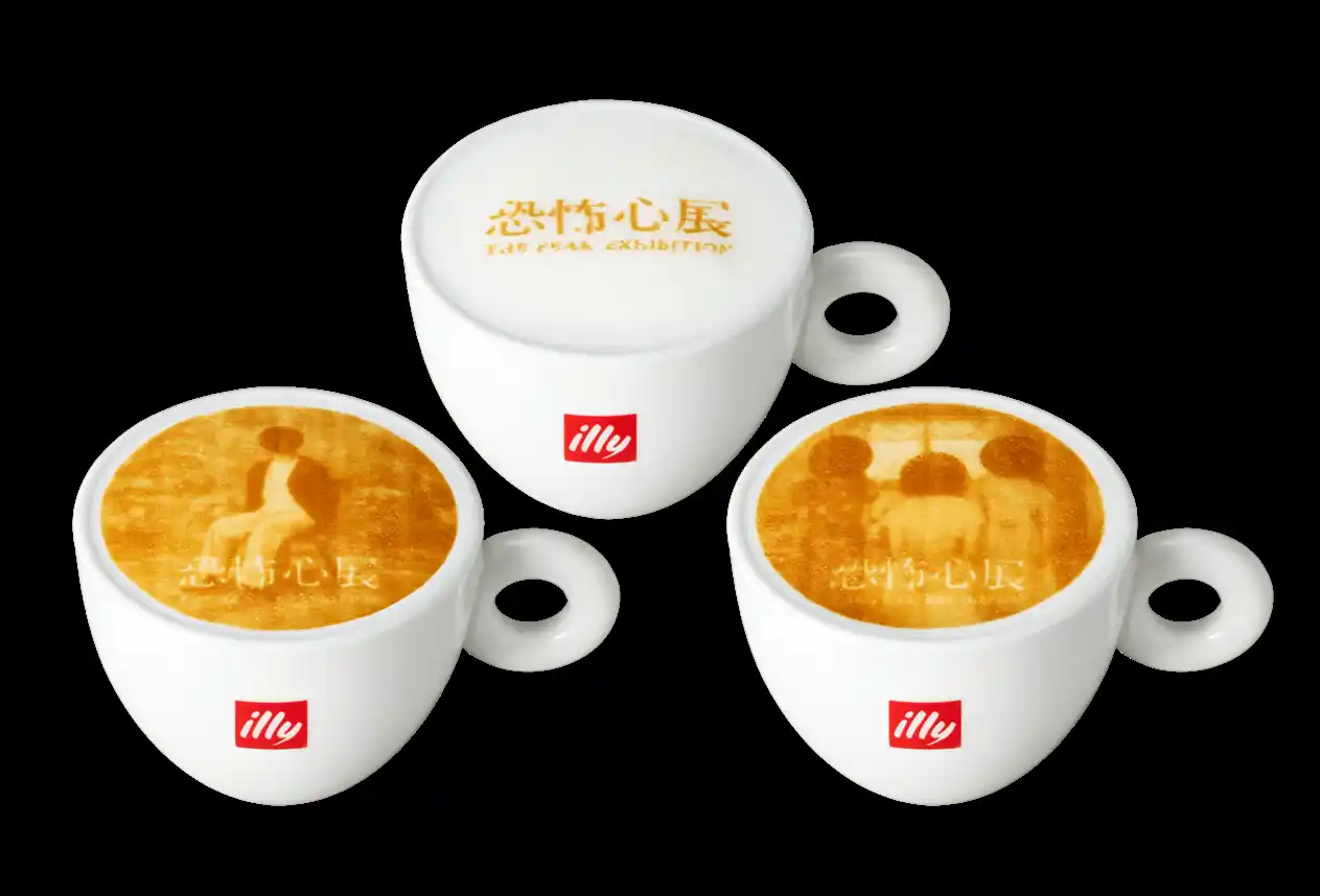 「先端」「閉所」「視線」など、日常に潜む多様な「恐怖心」を独自の視点で紐解く本展覧会の開催を記念し、会場に隣接する「カフェラボ」にて、展覧会のメインビジュアルをモチーフにした「オリジナルカプチーノ」を期間限定で販売いたします。 |