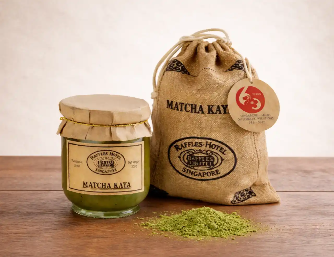 抹茶カヤは、パン、ビスケット、ワッフル、ペストリー、フレンチトースト、クレープ、クラッカーなどと相性抜群です。おなじみの麻袋に入った200gボトルで、価格は16シンガポールドル(税込み)です。抹茶カヤは、2026年4月1日よりラッフルズ・ブティックにて販売開始予定です。 |