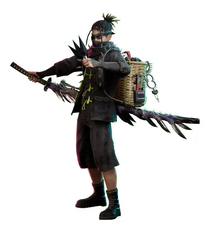 プレイヤーの分身となるボディで「サスケ」を選ぶと、豊富なバックパック容量を活かしてアイテム回収がはかどります。また、スキル「呪いの手裏剣」による遠距離攻撃で、敵に被ダメージが上昇する「呪い」を与えます。デュオプレイ時に同じ敵を狙うことで味方の火力を向上させるなど、戦略の幅が大きく広がります。 |