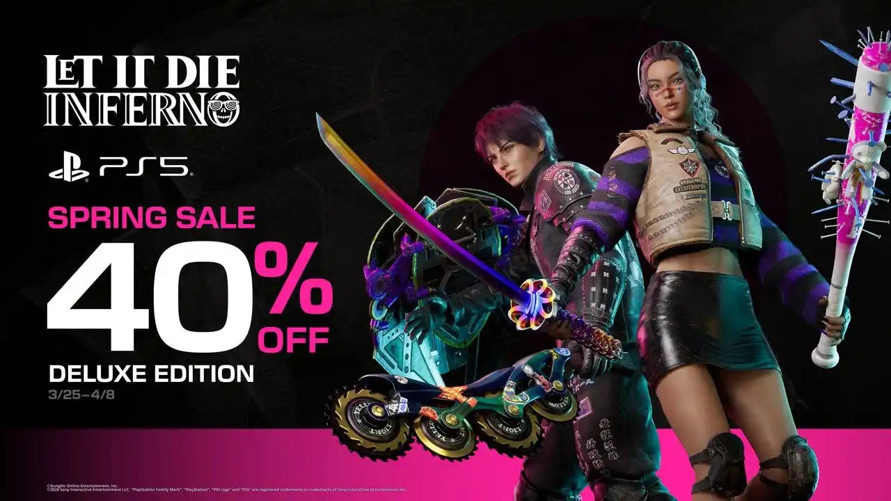 現在開催中のPlayStation(TM)Store「Spring Sale(第一弾)」に、『LET IT DIE: INFERNO』が参戦です。通常版の内容に加え、見逃せない特典の数々が同梱された「デラックスエディション」が、通常価格から40%オフの衝撃価格でラインナップ!過酷な地獄の旅をお得に始める、絶好のチャンスです。 |