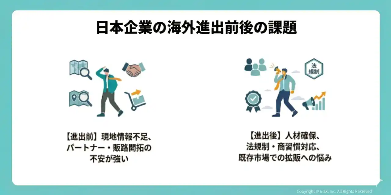 多くの日本企業が海外進出前後に抱える課題|BizX株式会社 |