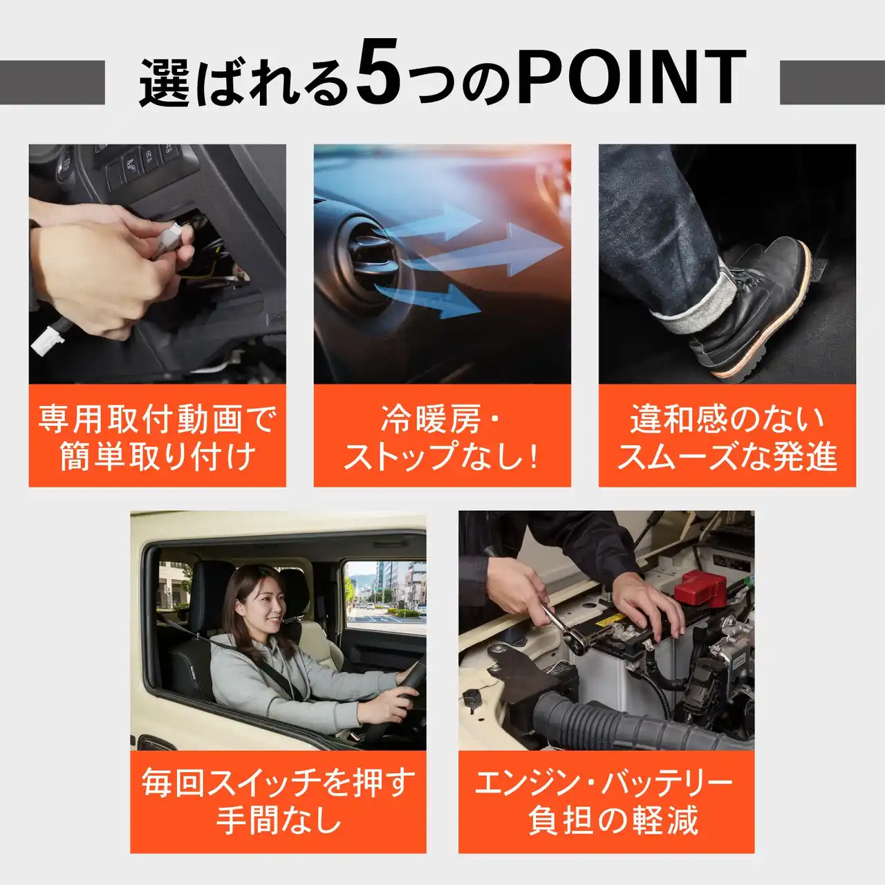 | 電気系統への負担を減らし、バッテリー交換頻度を下げます。 | |||||||||||||||