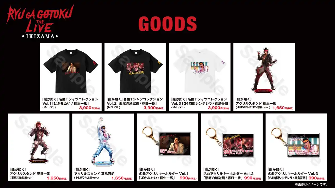 ●「龍が如く THE LIVE -IKIZAMA-」Tシャツ (M / L / XLサイズ)(税込価格 各3,900円) |