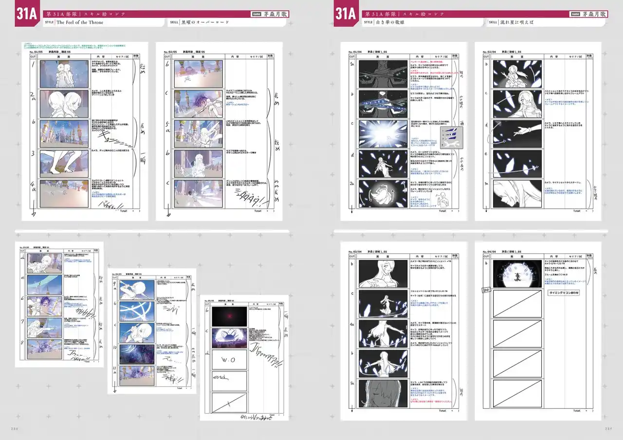 各キャラクターのスキルの絵コンテを掲載。スキル発動時の動きやエフェクトの設定が見どころです。 |