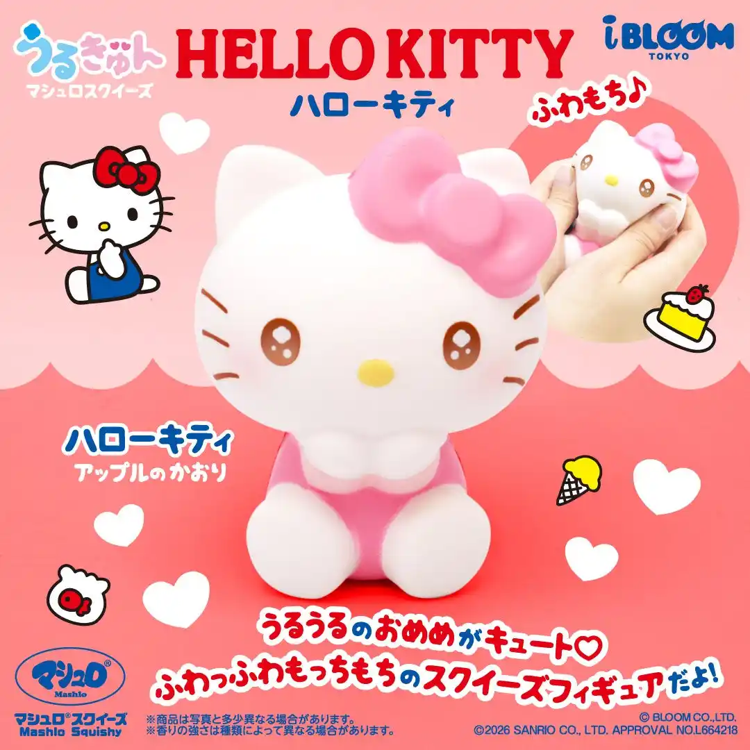 サンリオの人気シリーズ「うるきゅんマシュロスクイーズ」に、ついに ハローキティ が仲間入りしました。 |