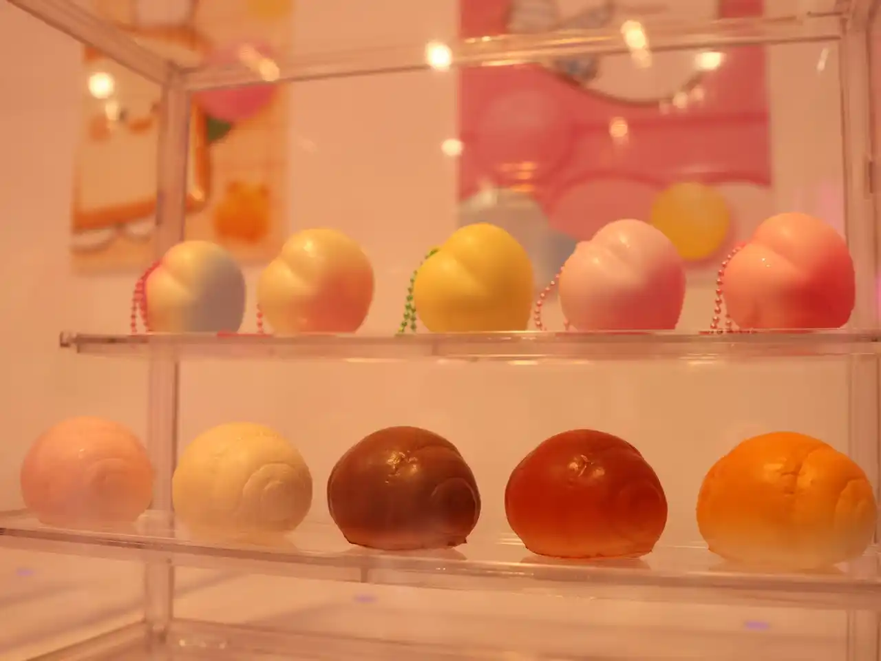 “推し活”ブームの広がりに合わせて、バッグに付けられるチャーム付きスクイーズも大人気です。メロンパンのスクイーズにはメロンの香り、ピーチのスクイーズにはピーチの香りといったように、それぞれのアイテムに甘くて心地よい香りがついており、見た目だけでなく香りでも楽しめるのが魅力です。 |
