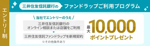 住信SBIネット銀行のお客さまは、住信SBIネット銀行の三井住友信託ファンドラッププログラムのご利用により、三井住友信託ファンドラップのご契約金額に応じたスマプロポイントをお受け取りいただけます。詳細は住信SBIネット銀行のホームページをご確認ください。 |