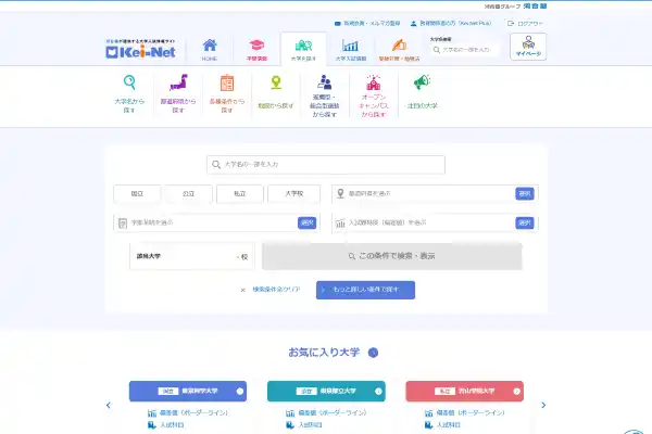| 学校法人河合塾は、3月26日(木)に「Kei-Net」をリニューアルし、入試情報にとどまらない「進路・大学入試情報サイト」として展開します。大学入試に挑む受験生だけでなく、低学年からの進路選択を支える道しるべとして、生徒の選択肢を広げ、進路実現を支援します。 | ||||||||||||||