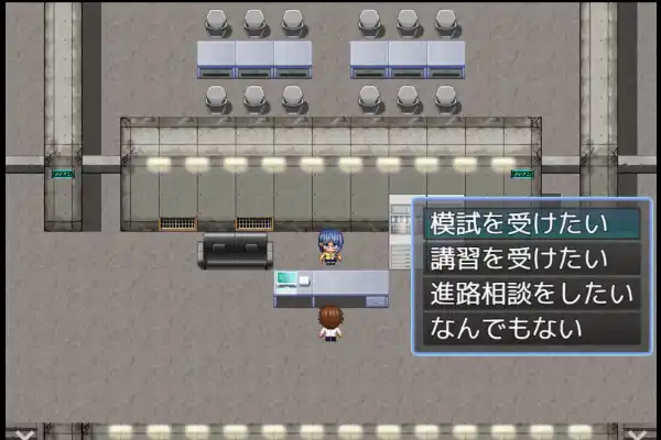 | ゲーム内では、河合塾の学問・大学選び支援サイト「みらいぶっく」を元にした興味・関心診断で、キャラクターの適性タイプを決定。その後、Kei-Netでの入試科目検索やオープンキャンパス、先輩との交流を通じて進路情報を収集しながら、河合塾の模試や講習で学力を伸ばしていきます。最後に、選んだ志望校に出願して筆記試験と面接に挑みます。プレイヤーの行動によって結果が変わるマルチエンディング方式で、受験に向けた準備の大切さを実感できる内容です。 | ||||||||||||||