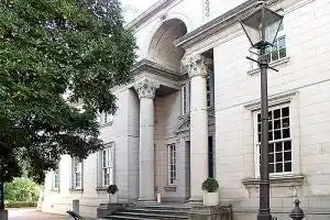 近代建築としても人気の高い旧館(旧英国総領事館)と中庭に植わる横浜開港のシンボル玉楠の木 |
