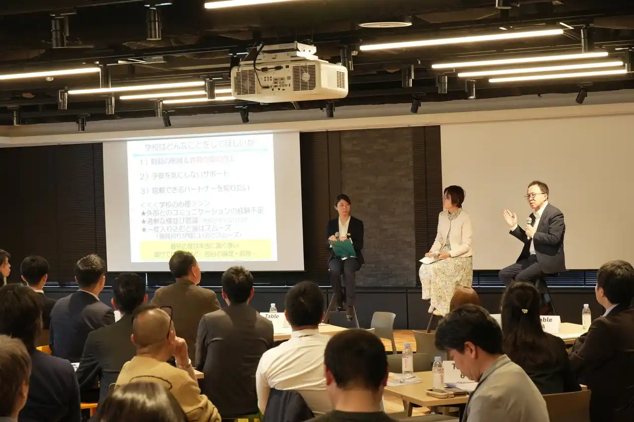当日は、学校現場の課題解決に関心を持つ民間企業担当者(約40社・80名)が一堂に会し、人手不足や予算不足に直面する学校現場のリアルな課題と、それを解決するための学校教材界の資産をプラットフォームにした新しい共創の形について、熱気あふれる議論が交わされました 。