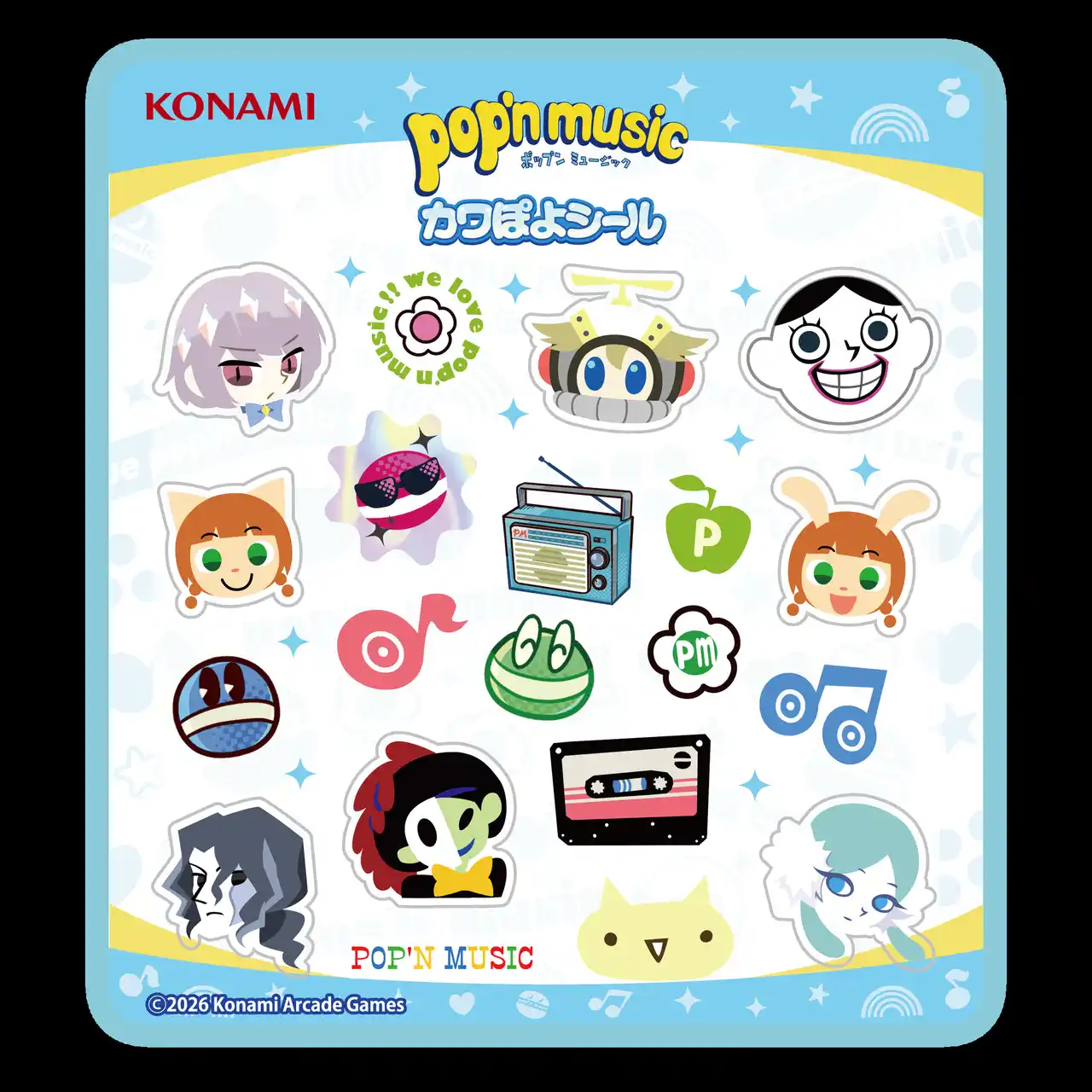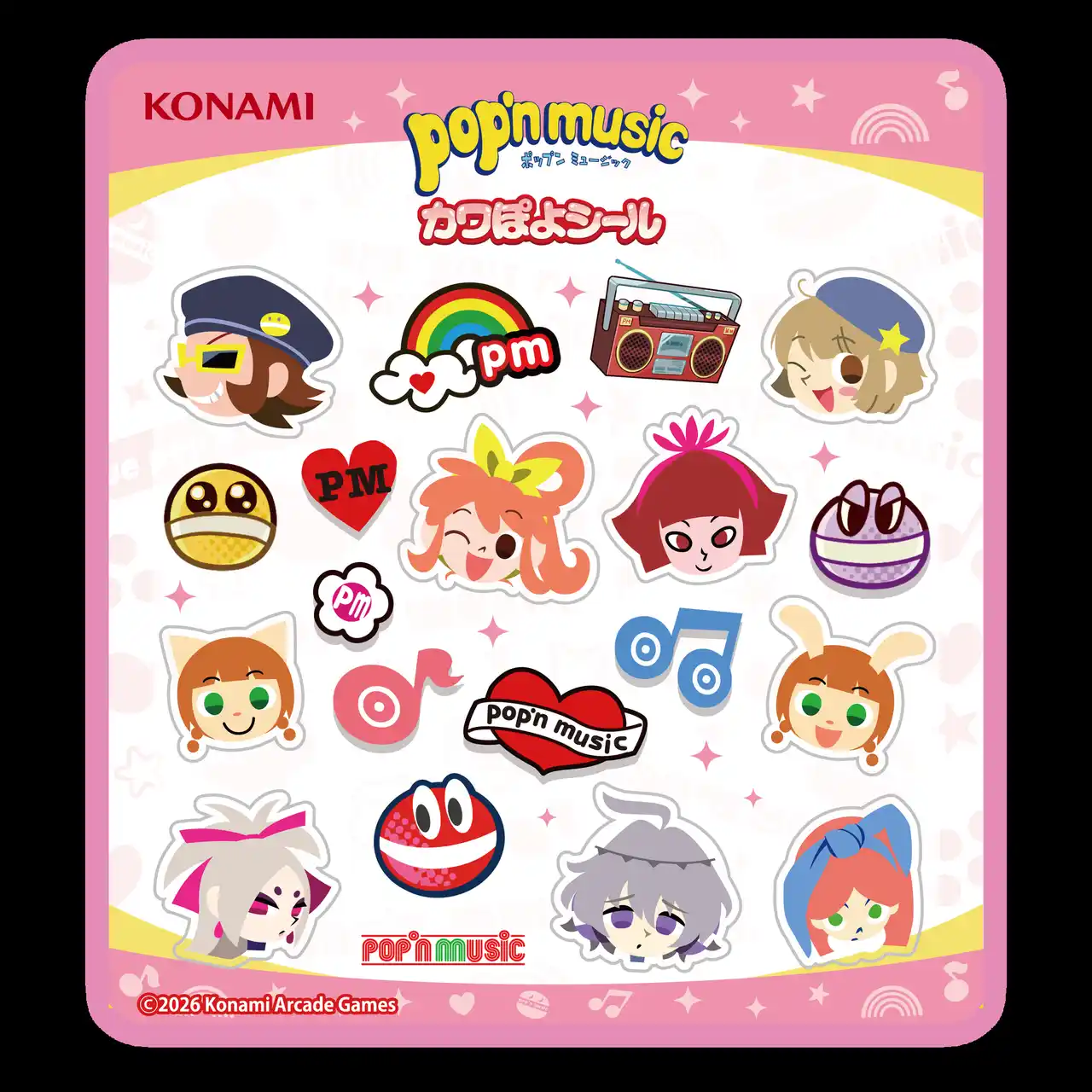 「pop'n music」シリーズのキャラクターたちがぽよっとかわいい立体シールになって登場! |
