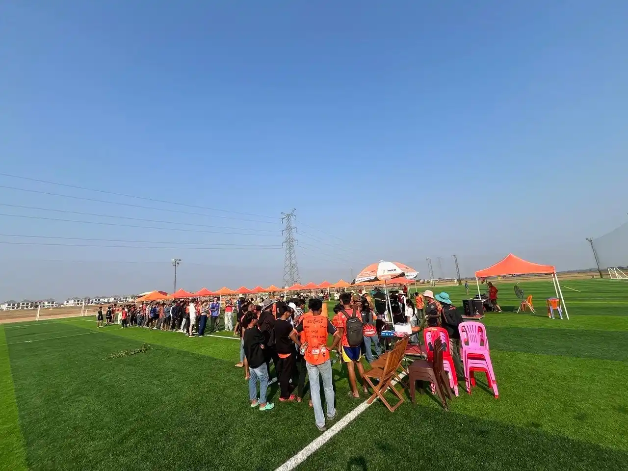 15の多彩なブース出店: 地元の人気フードや冷たいドリンク、シェムリアップの特産品を扱うブースが計15店舗並びました。来場者は試合前から地元の味を堪能し、スタジアム周辺はさながら「新年のマーケット」のような賑わいを見せました。 |