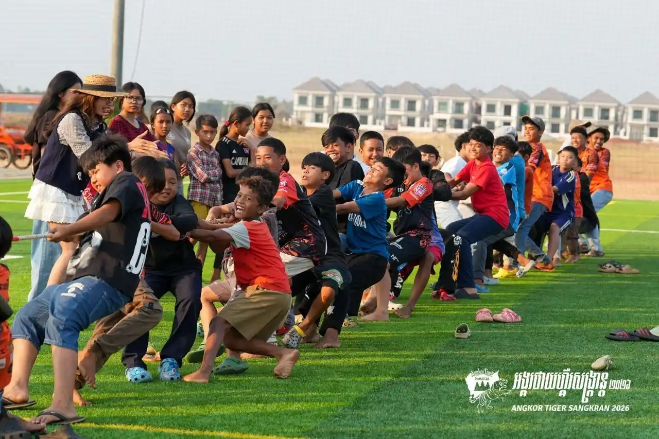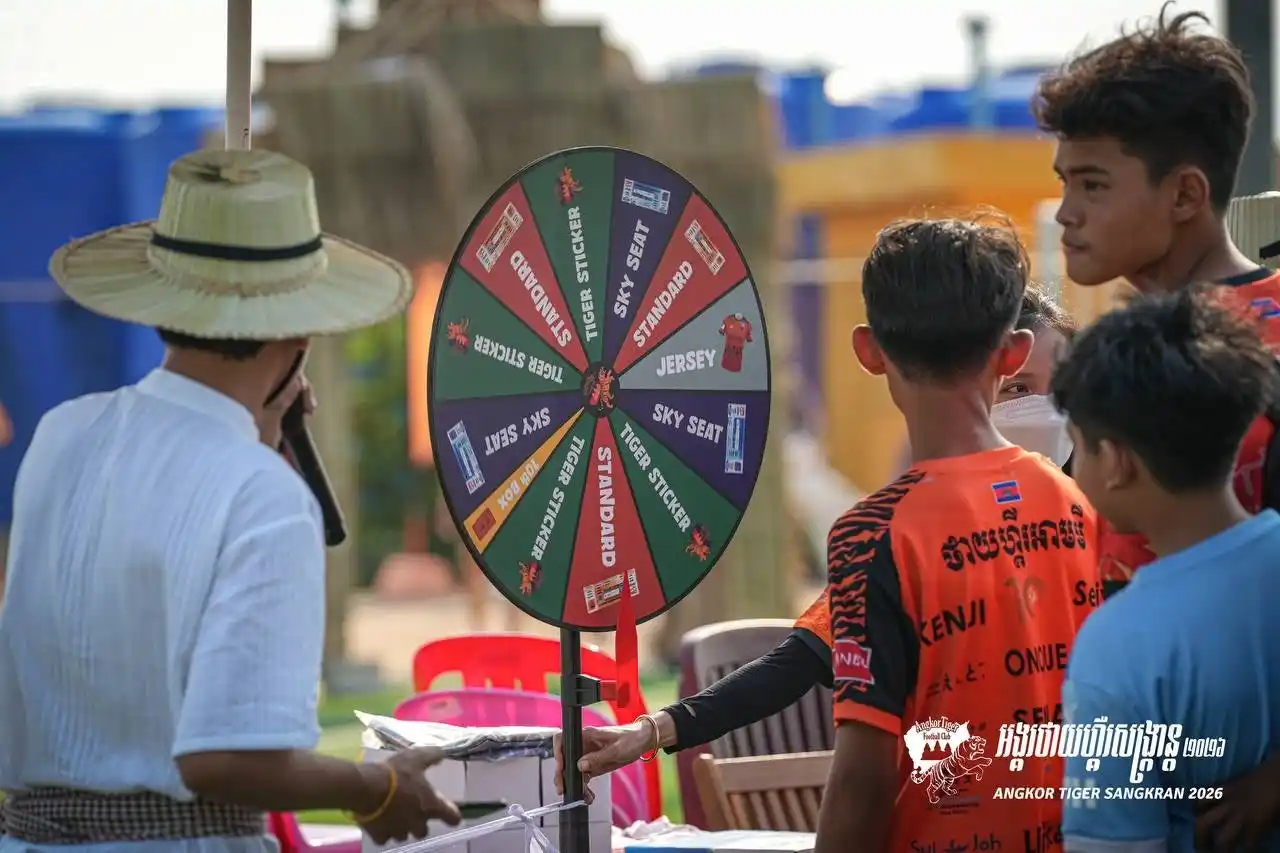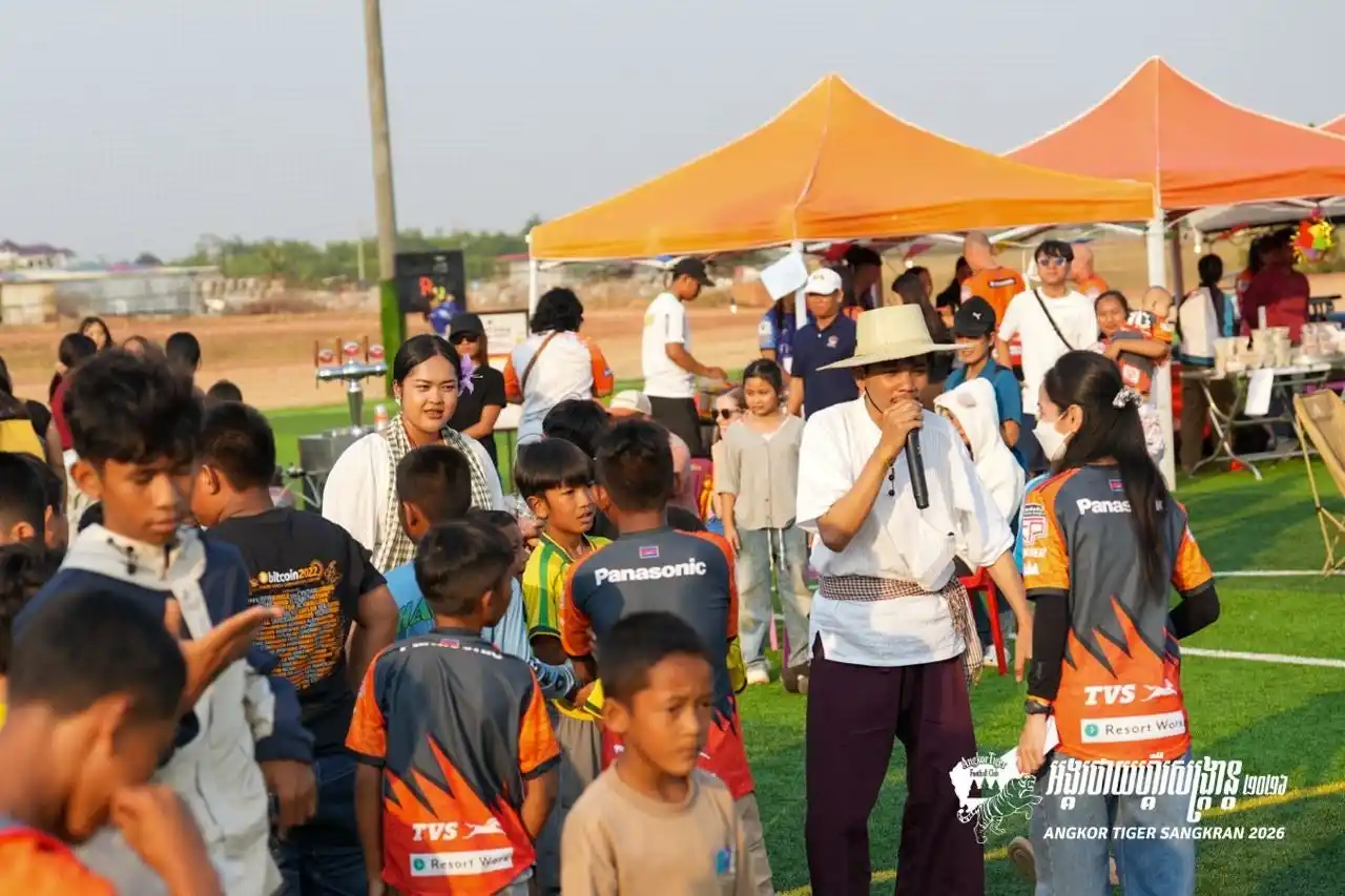 カンボジア・プロサッカー1部リーグ所属のアンコールタイガーFC(本拠地:シェムリアップ)は、2026年3月22日(日)、のホーム戦(vs デワFC)に合わせ、ホームスタジアム隣接の「Nobuaki Tanabe Field」にて、カンボジア最大のお祭り「ソンクラン(クメール正月)」を祝うイベントを開催いたしました。当日は約2,000名のファンが駆けつけ、伝統行事とサッカーが融合した熱狂の一日となりました。 |