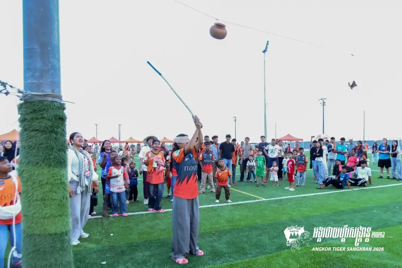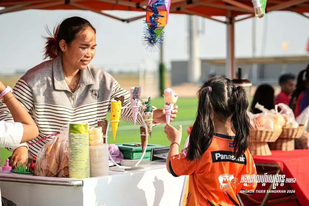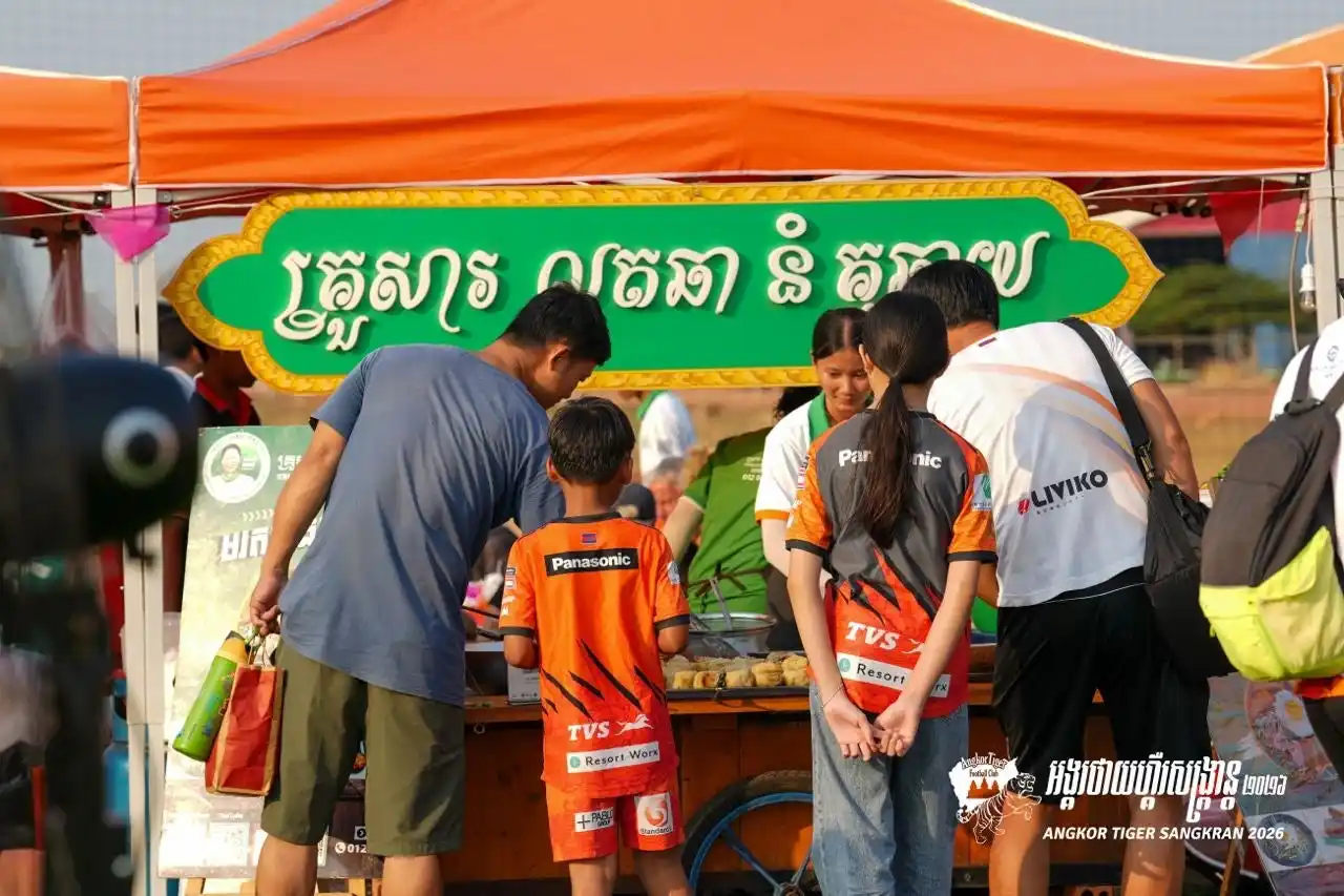 カンボジア・プロサッカー1部リーグ所属のアンコールタイガーFC(本拠地:シェムリアップ)は、2026年3月22日(日)、のホーム戦(vs デワFC)に合わせ、ホームスタジアム隣接の「Nobuaki Tanabe Field」にて、カンボジア最大のお祭り「ソンクラン(クメール正月)」を祝うイベントを開催いたしました。当日は約2,000名のファンが駆けつけ、伝統行事とサッカーが融合した熱狂の一日となりました。 |