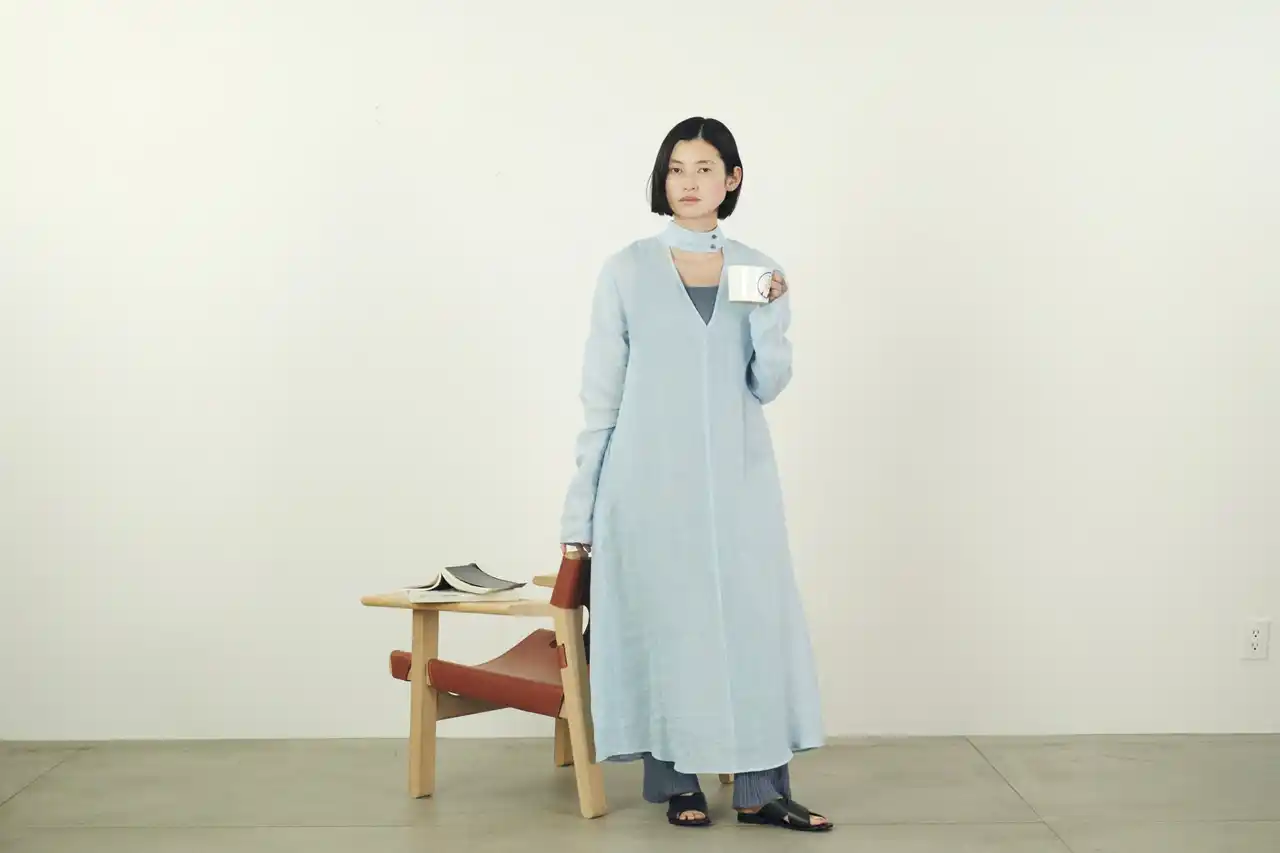 ブランドを代表する「東炊き」製法の麻を使ったワンピース。 |