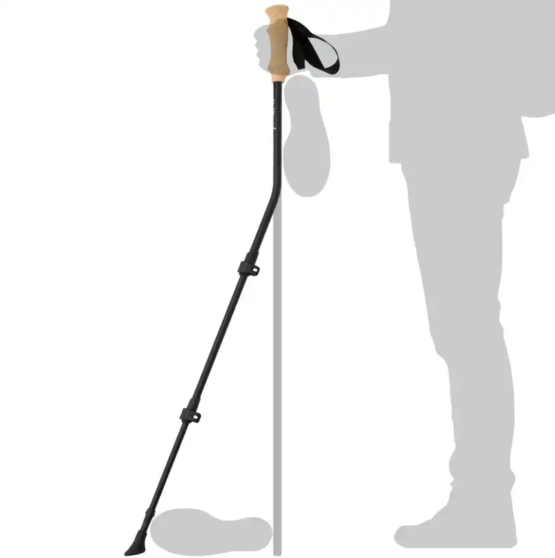 | これまでのトレッキングポールは、杖先が体の近くに接地するため、地面に対する土台の 面積(支持基底面)が狭くなる傾向にありました。「軽禅杖」は杖先が一歩前に接地するため支持基底面が広くなります。そのため、四足歩行の動物のように歩くことができ、岩場や不整地でも安定したバランスを保ち、転倒リスクの軽減をサポートします。 | |||
