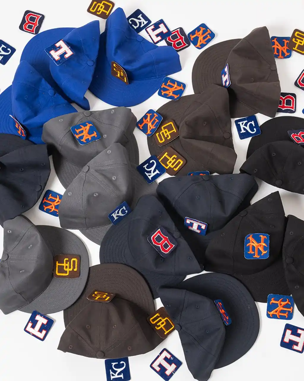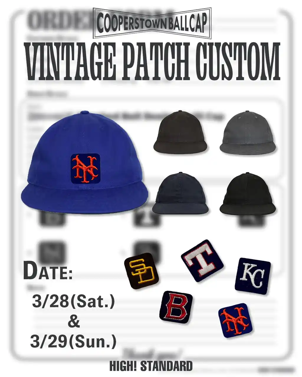 春の装いに変化をつけたくなるこの時期に合わせ、ヴィンテージパッチ全5種を用意したキャップ |