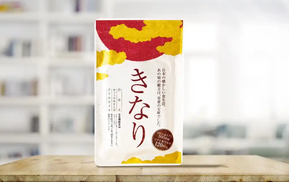 きなりには、DHA・EPAを豊富に配合し、さらにEPAの約10倍*ともいわれるフレッシュパワーを持つDPAやアスタキサチン、日本古来の健康酵素であるナットウキナーゼなどを組み合わせることで、日々の健康習慣を支える設計となっています。 |