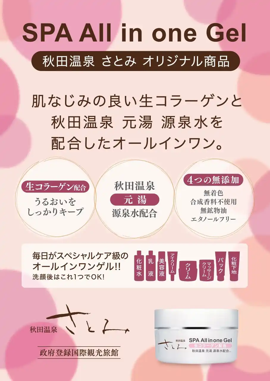 株式会社秋田温泉さとみ(所在地:秋田県秋田市)は、自社オリジナルの本格派オールインワンゲルを新たに発売いたします。商品は以下の通りです。 |