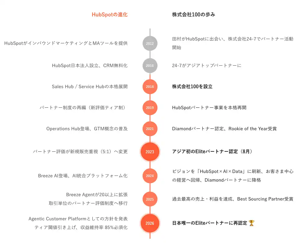 HubSpotの進化と株式会社100の歩み ― 8年の並行史 |