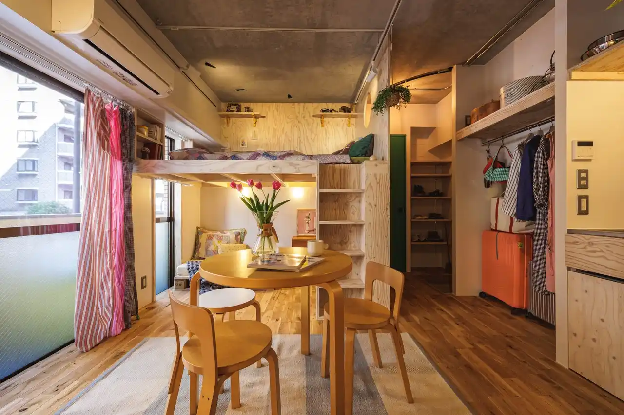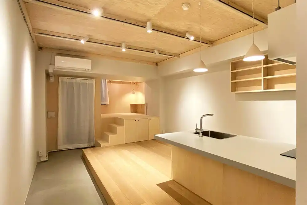 2020年にウッド×モルタルのスマートな山小屋をイメージさせるCABINシリーズをYURIEさんとリリースいたしました。前回のCABINシリーズにあたっては、「ワンルームでも広いお部屋であり、やりたいことがやれた。次は狭いということをネガティブではなく、コンパクトだからこそ、”ワクワクする””居心地の良い住処”のようにポジティブなものにしたい」とYURIEさんの想いから、新シリーズは遊び心もありながら、ロフトが作る高低差と、上下左右に広がるギミックに溢れた空間へとアップデートされたシリーズとなりました。 |