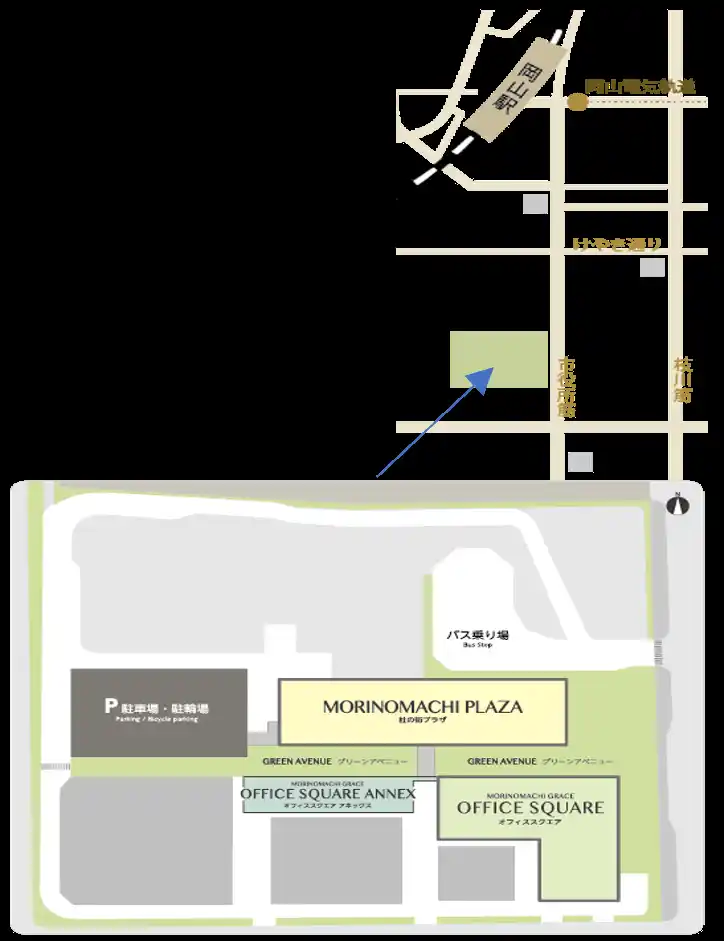 JR岡山駅(地下改札口)より徒歩12分 |