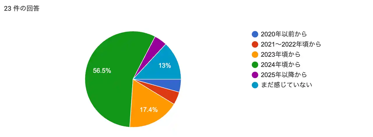 約74%がコロナ明け以降(2023~2024年)に実感し始めたと回答 |