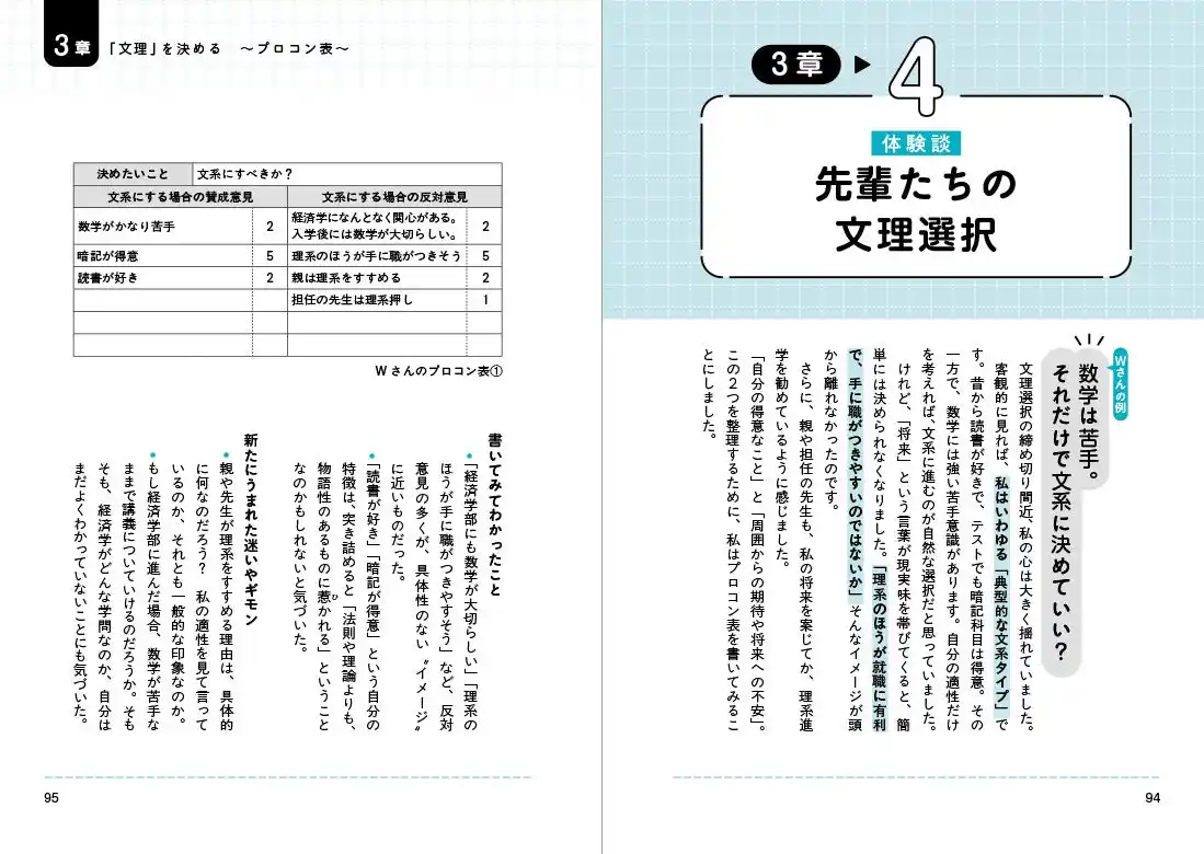 本書では、文理選択から大学選びまで、先輩たちが何を悩み、どう決断したのか。きれい事ではない「リアルな葛藤とエピソード」を多数収録しています。 |