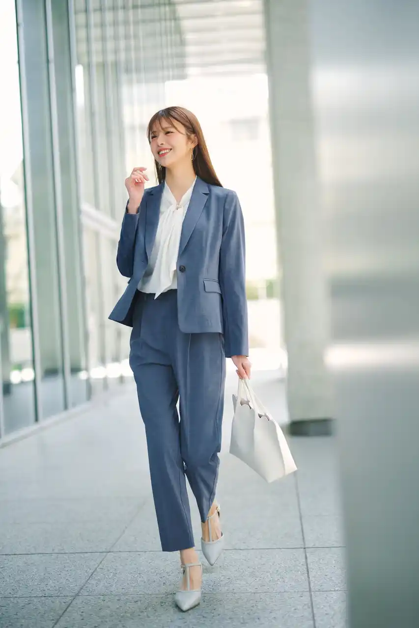 ジャケット ¥8,800/ブラウス ¥4,979/パンツ ¥5,479/ピアス ¥2,200/バッグ¥5,479/パンプス ¥6,600 |