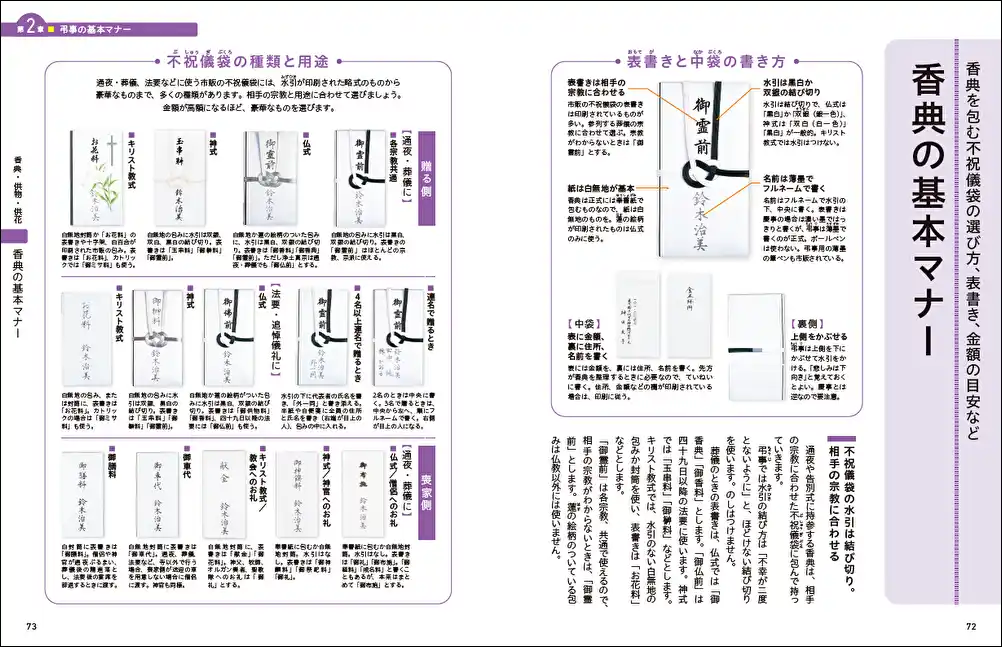 お金のマナー以外にも、喪服や焼香のマナーなどもイラスト・写真つきで掲載。 |