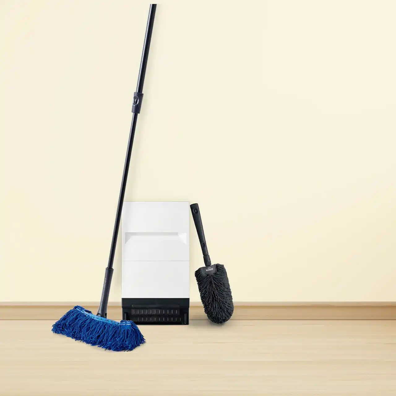 フローリングや棚等のホコリ取りに便利な大人気のダスキンモップ2本とモップクリーナーの3点セット |