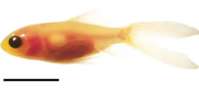 図1. 実験に用いた透明金魚の稚魚 スケールバーは1cm |