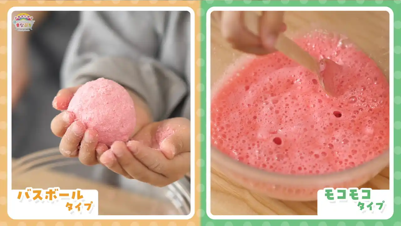 遊びの途中で気づいたことを言葉にしたり、できたバスボムを湯船で溶かして発泡の様子を見比べたりと、工程ごとに自然と学びが積み重なっていきます。親子で一緒に"遊びながら学ぶ"体験をお楽しみください。 |