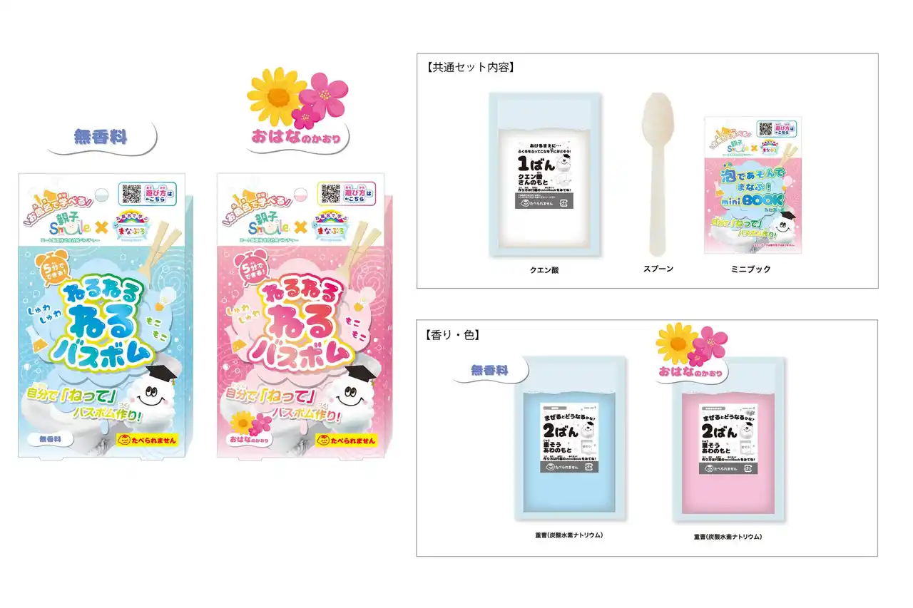 株式会社ノルコーポレーション(本社:東京都調布市)は、ロート製薬株式会社発のベンチャー企業親子Smile合同会社(本社:大阪府大阪市)とのコラボのバス雑貨「まなぶろ ねるねるねるバスボム」を2026年3月27日(金)より発売します。2種のパウダーを混ぜて泡を作ったり、丸めて固めればバスボムに。 |