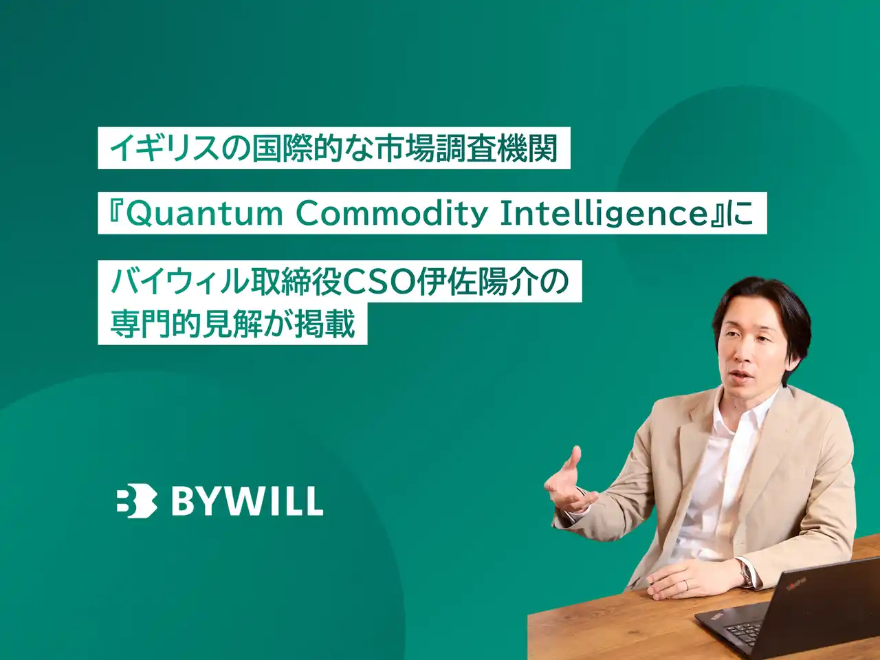| 「GXをやりたくなる世界」を目指し、環境価値を活用した経済循環を推進する株式会社バイウィル(本社:東京都中央区、代表取締役社長:下村 雄一郎、以下「バイウィル」)は、取締役CSO 伊佐 陽介が、国際的なエネルギー・カーボン市場の専門メディア「Quantum Commodity Intelligence(以下、Quantum)」の取材を受け、その専門的見解が同メディアの記事に多数引用・掲載されたことをお知らせいたします。 | |||